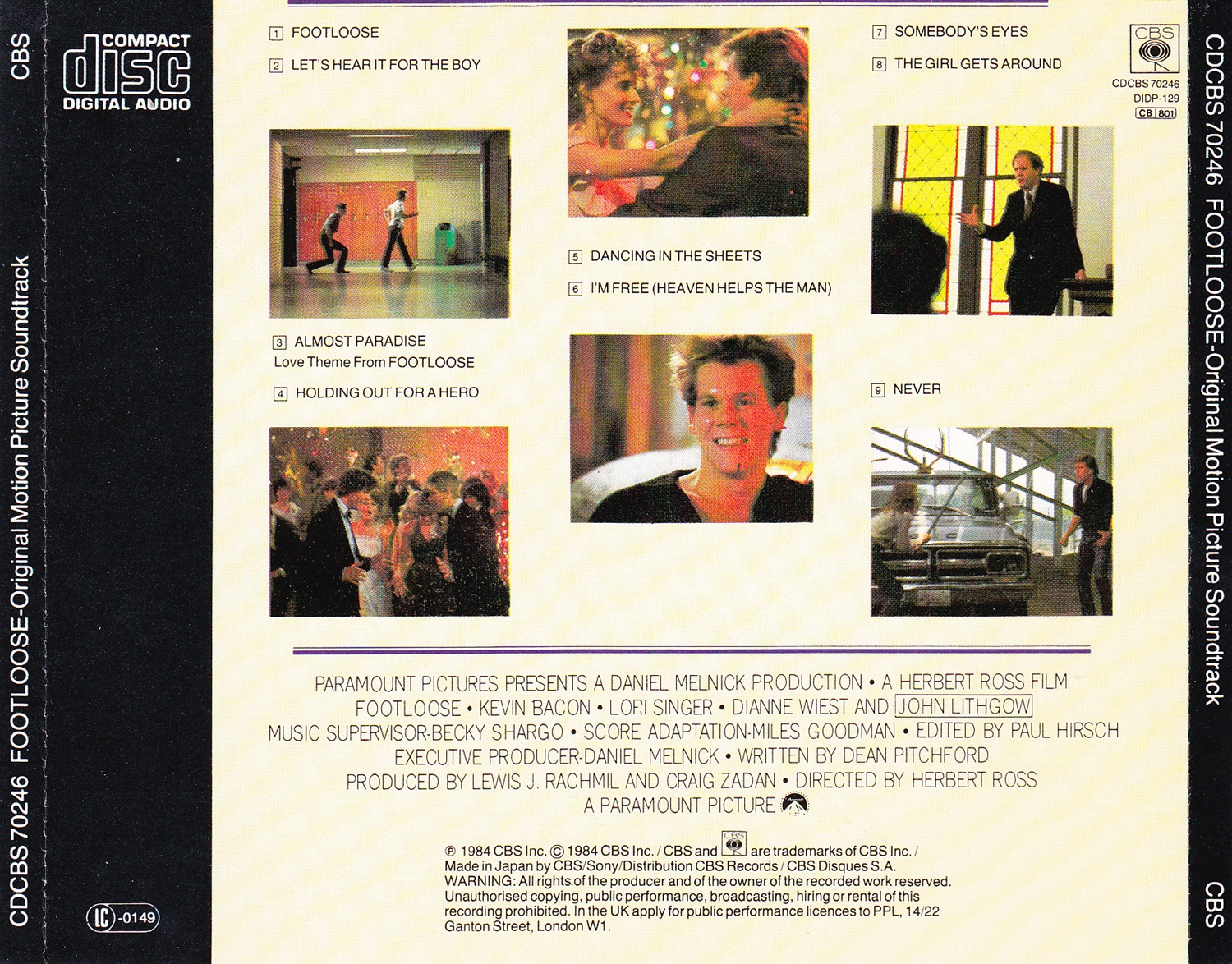 Wikipedia: Texter und Drehbuchautor Dean Pitchford und Komponist und Arrangeur Michael Gore, die 1980 zusammen an der Filmmusik für Fame - Der Weg zum Ruhm beteiligt waren und für den Titelsong mit dem Oscar ausgezeichnet wurden, arbeiteten auch an dem Soundtrack für Footloose zusammen. Unterstützt wurden sie von Tom Snow (Let’s Hear it for the Boy und Somebody’s Eyes), Eric Carmen (Almost Paradise), Jim Steinman (Holding Out for a Hero), Sammy Hagar, Bill Wolfer (Dancing in the Sheets) und Kenny Loggins. Das Album wurde in den Capitol Studios in Los Angeles von Wally Traugott gemastert.