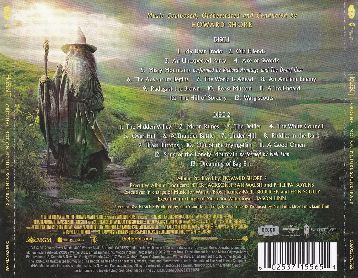 Wikipedia: Die Filmmusik wurde wie schon bei den Der-Herr-der-Ringe-Filmen von Howard Shore komponiert; Aufnahmen dazu entstanden in den Londonern Abbey Road Studios. Der Abspanntitel trägt den Namen Song of the Lonely Mountain und wurde von Neil Finn eingesungen. Das Soundtrackalbum stieg in den Vereinigten Staaten und in Südkorea in die Top-10 der Charts ein.